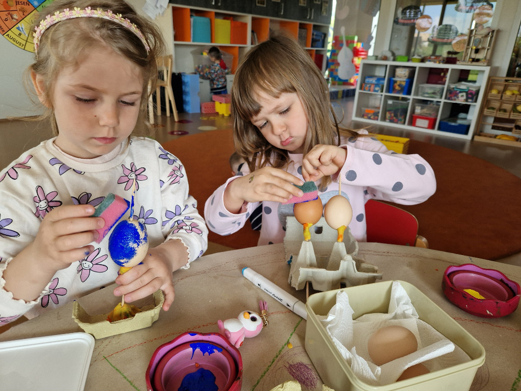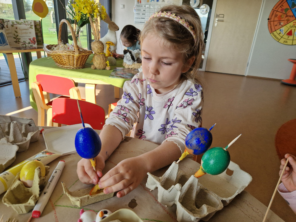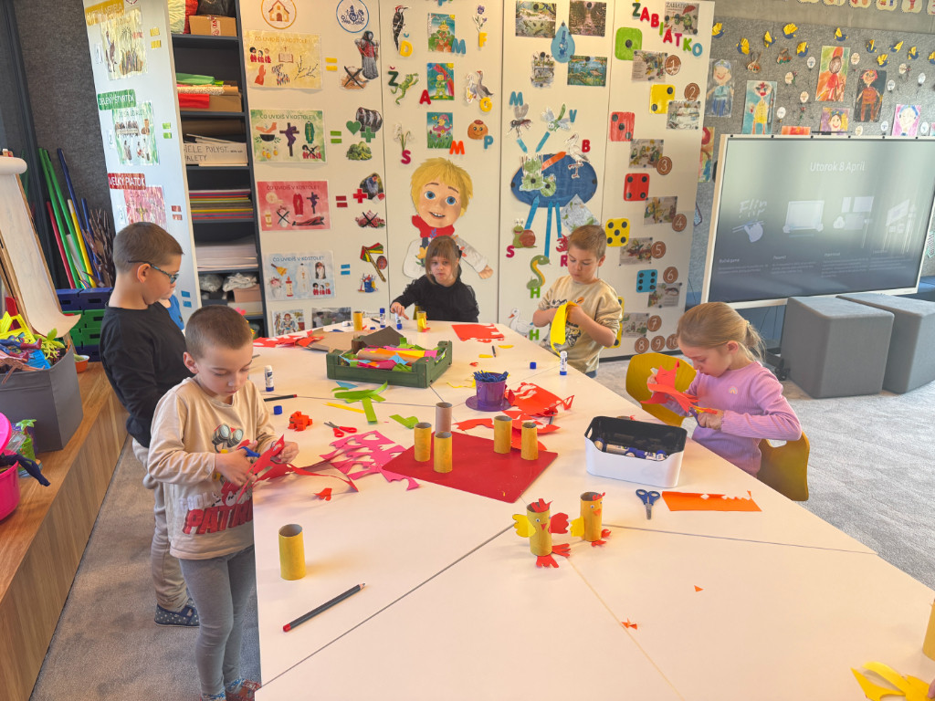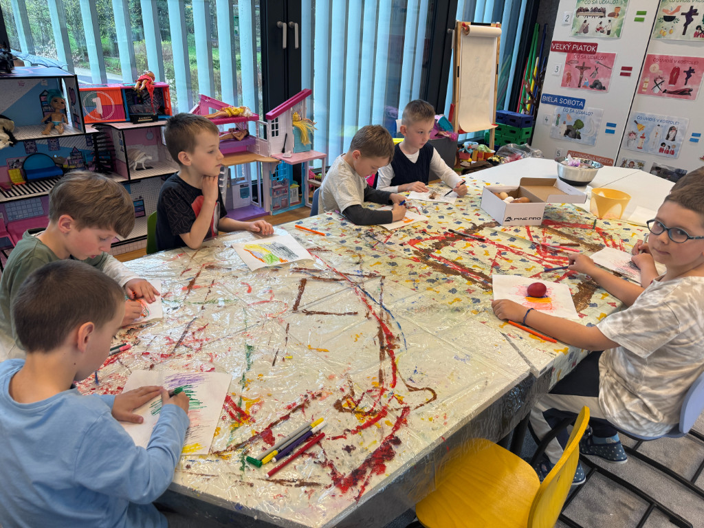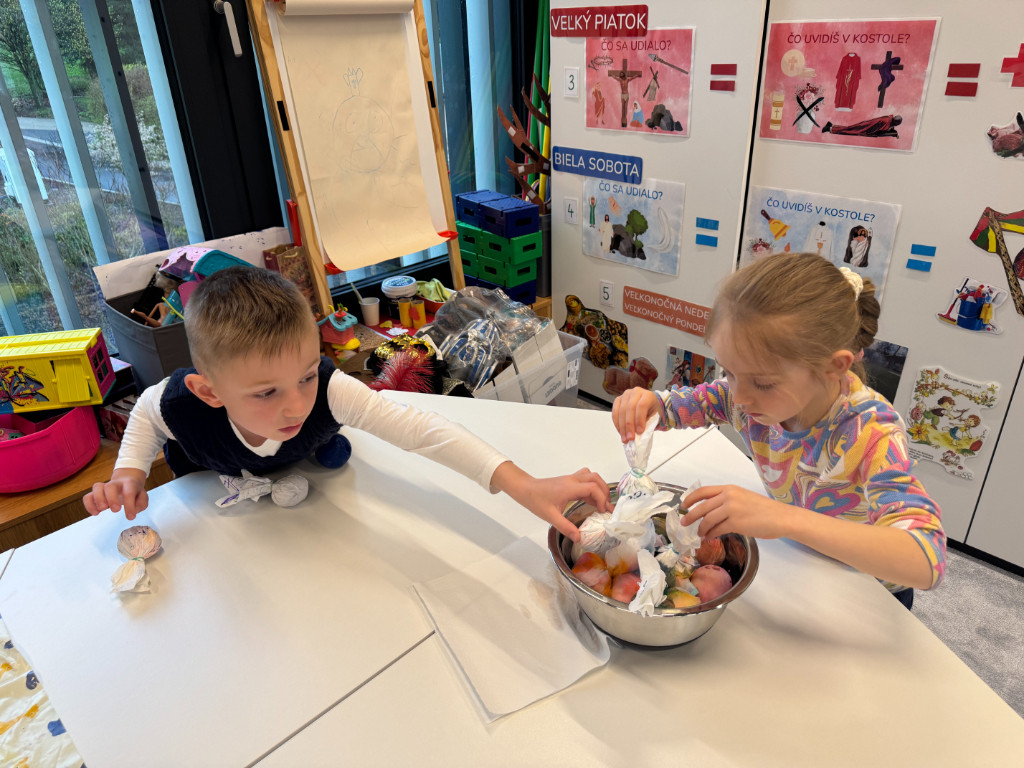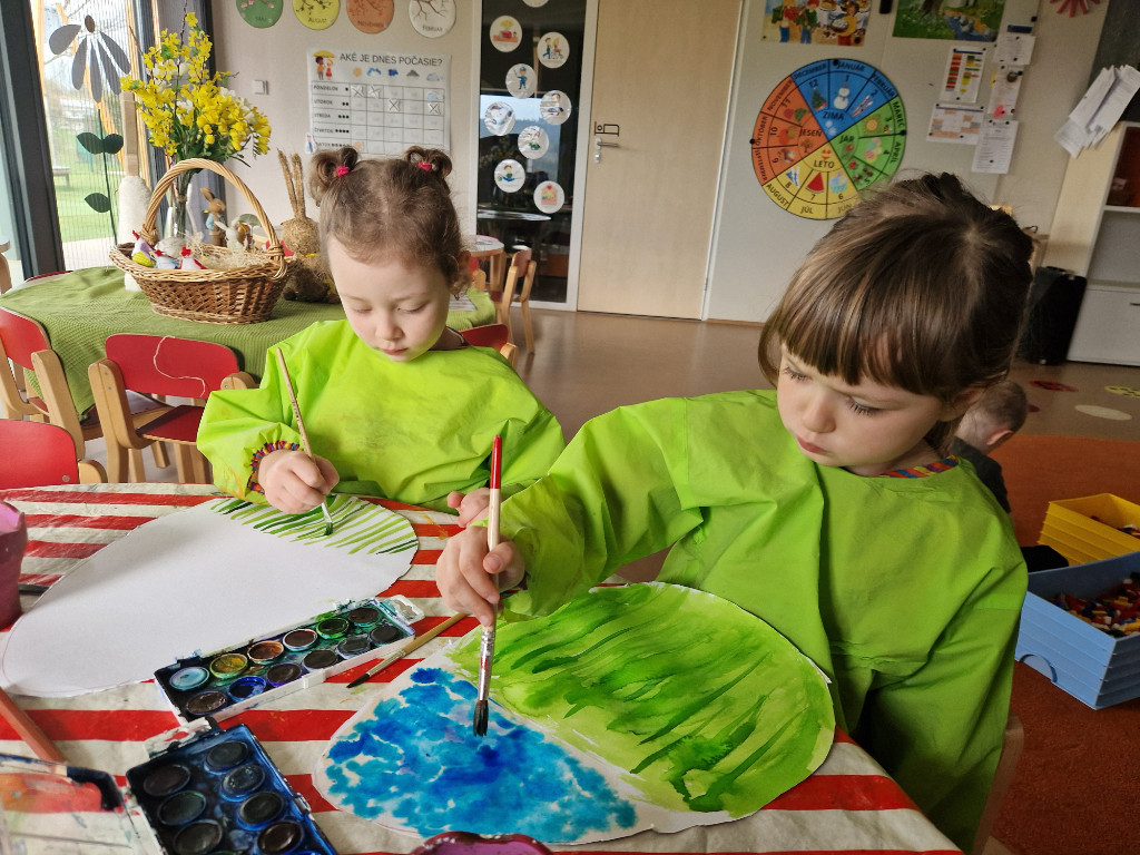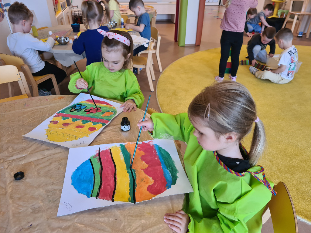 V našej triede Veľkáčov zavládla pred Veľkou nocou tvorivá atmosféra. S radosťou sme sa pustili do maľovania veľkonočných vajíčok – niektoré boli bodkované, iné pásikavé alebo plné pestrých farieb a kvetov. Okrem toho sme si vyrobili aj vlastné papierové vajíčka, ktoré sme krásne vyzdobili. Žilo to u nás farbami, smiechom a jarnou veľkonočnou náladou.