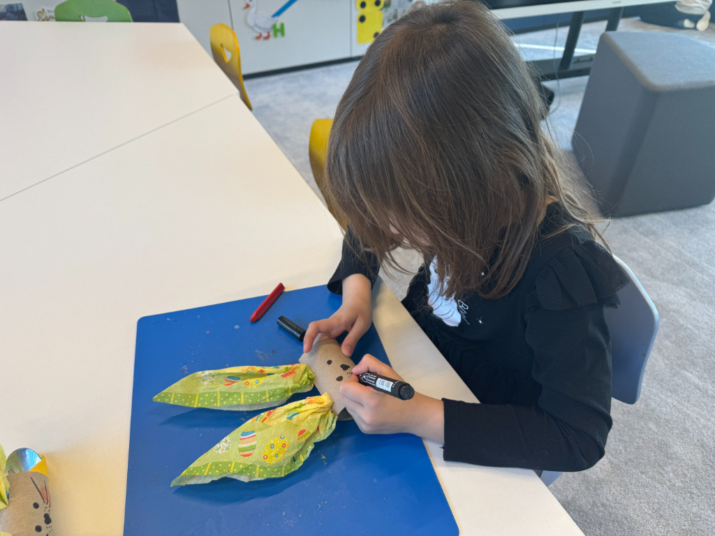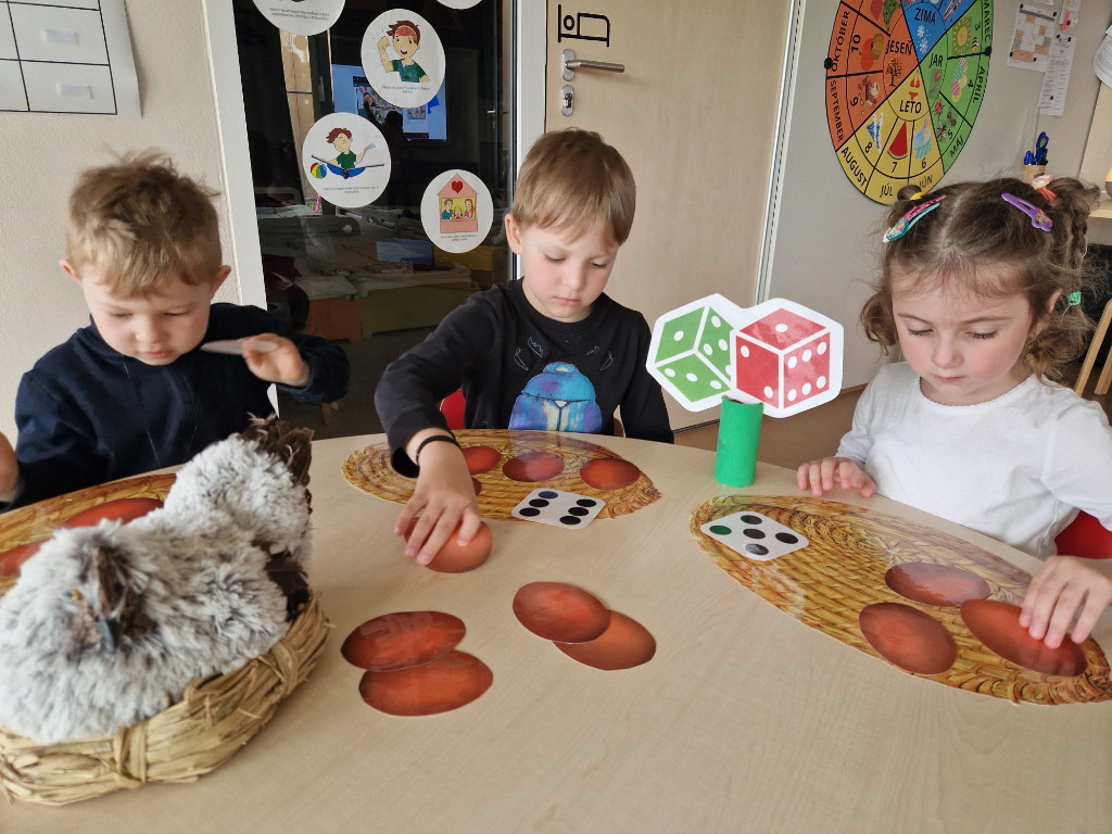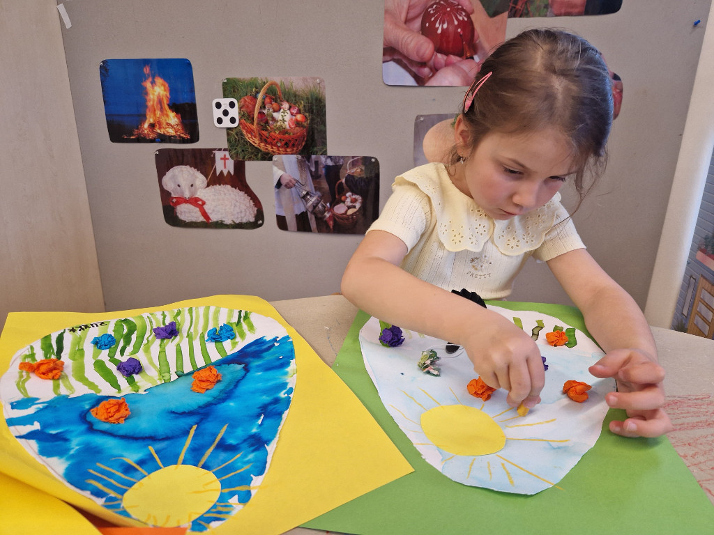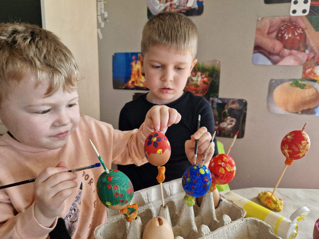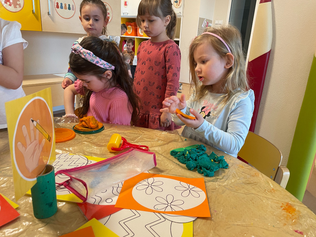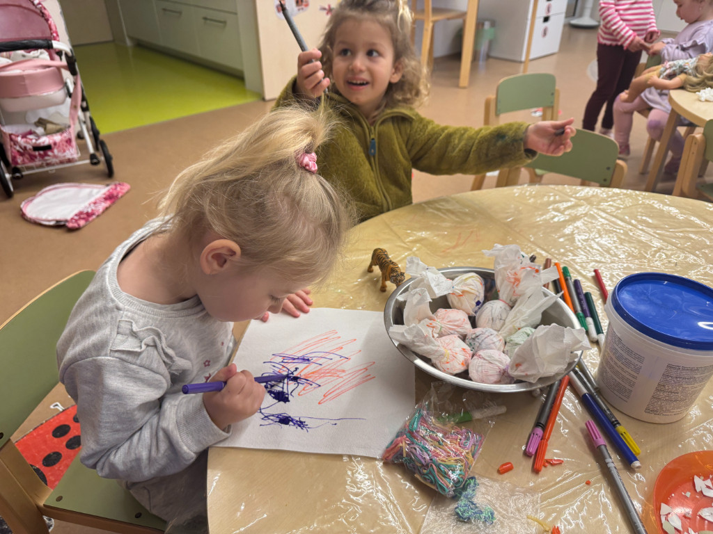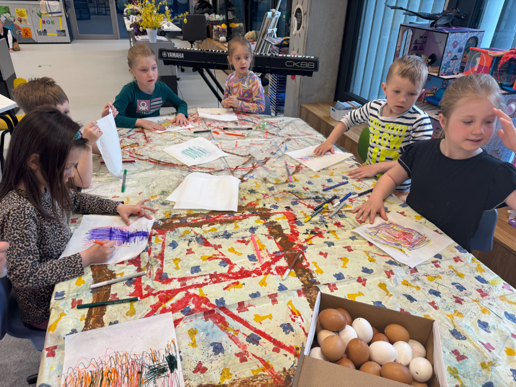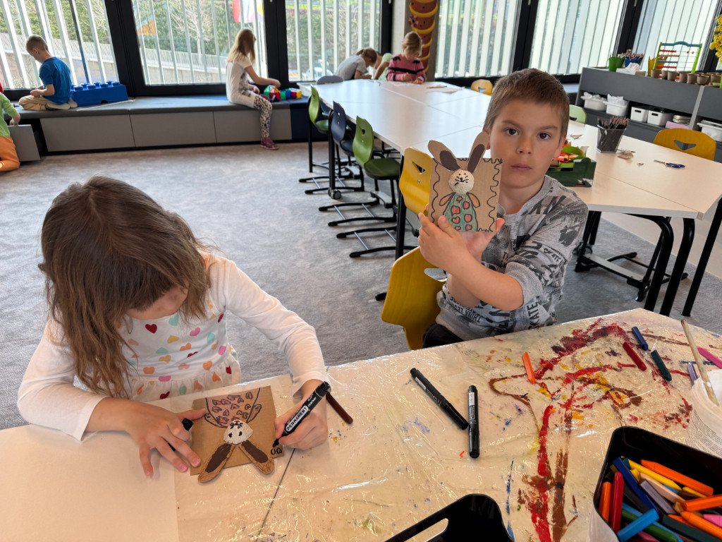 V našej triede Veľkáčov zavládla pred Veľkou nocou tvorivá atmosféra. S radosťou sme sa pustili do maľovania veľkonočných vajíčok – niektoré boli bodkované, iné pásikavé alebo plné pestrých farieb a kvetov. Okrem toho sme si vyrobili aj vlastné papierové vajíčka, ktoré sme krásne vyzdobili. Žilo to u nás farbami, smiechom a jarnou veľkonočnou náladou.