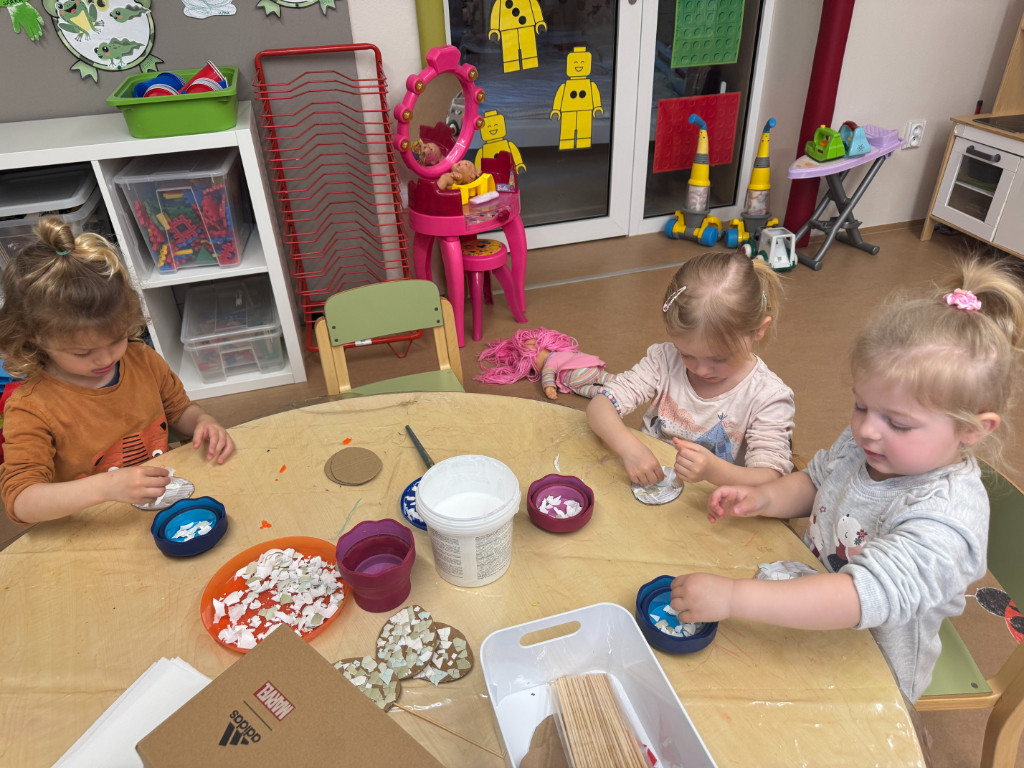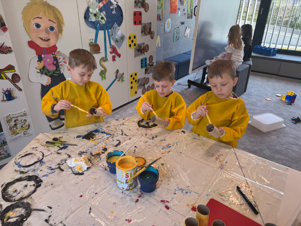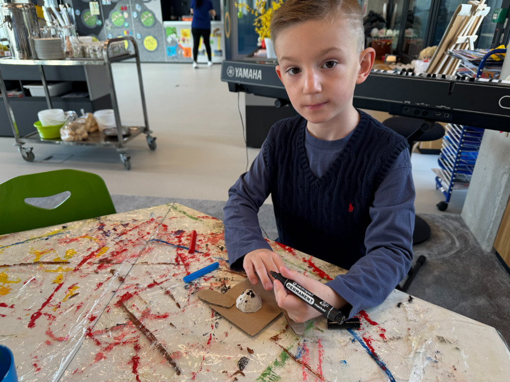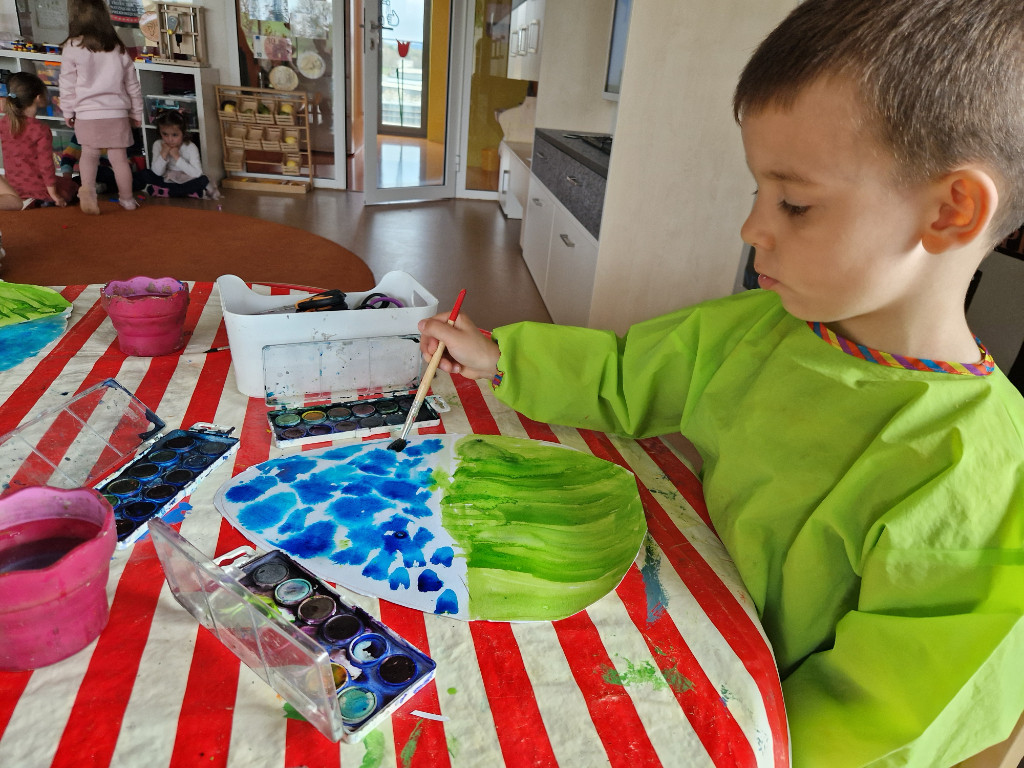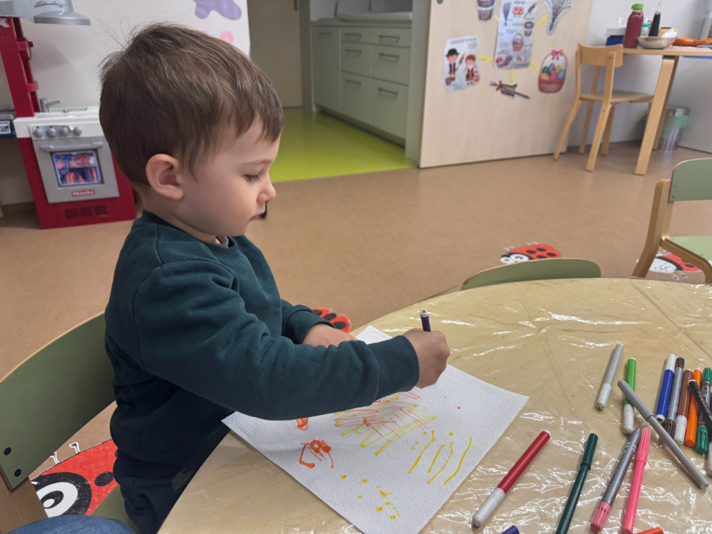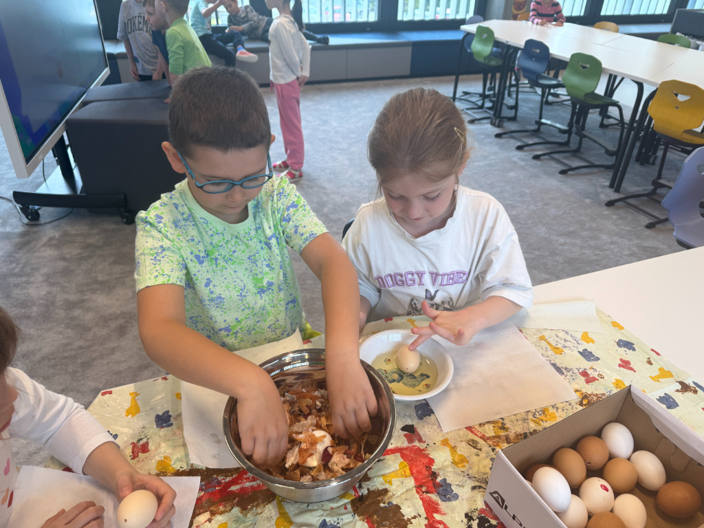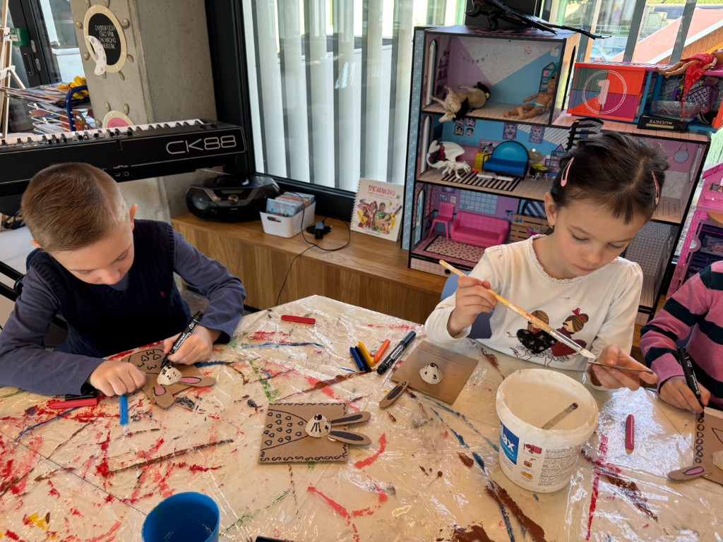 V našej triede Veľkáčov zavládla pred Veľkou nocou tvorivá atmosféra. S radosťou sme sa pustili do maľovania veľkonočných vajíčok – niektoré boli bodkované, iné pásikavé alebo plné pestrých farieb a kvetov. Okrem toho sme si vyrobili aj vlastné papierové vajíčka, ktoré sme krásne vyzdobili. Žilo to u nás farbami, smiechom a jarnou veľkonočnou náladou.