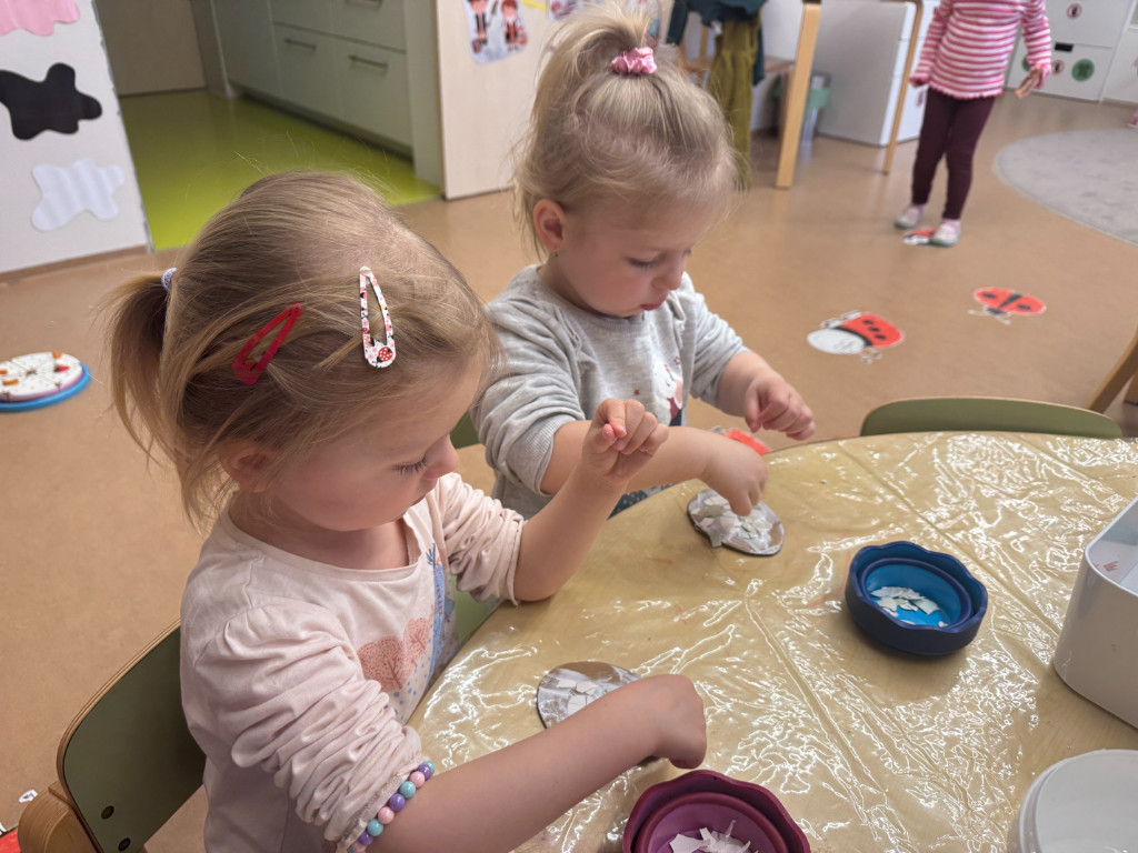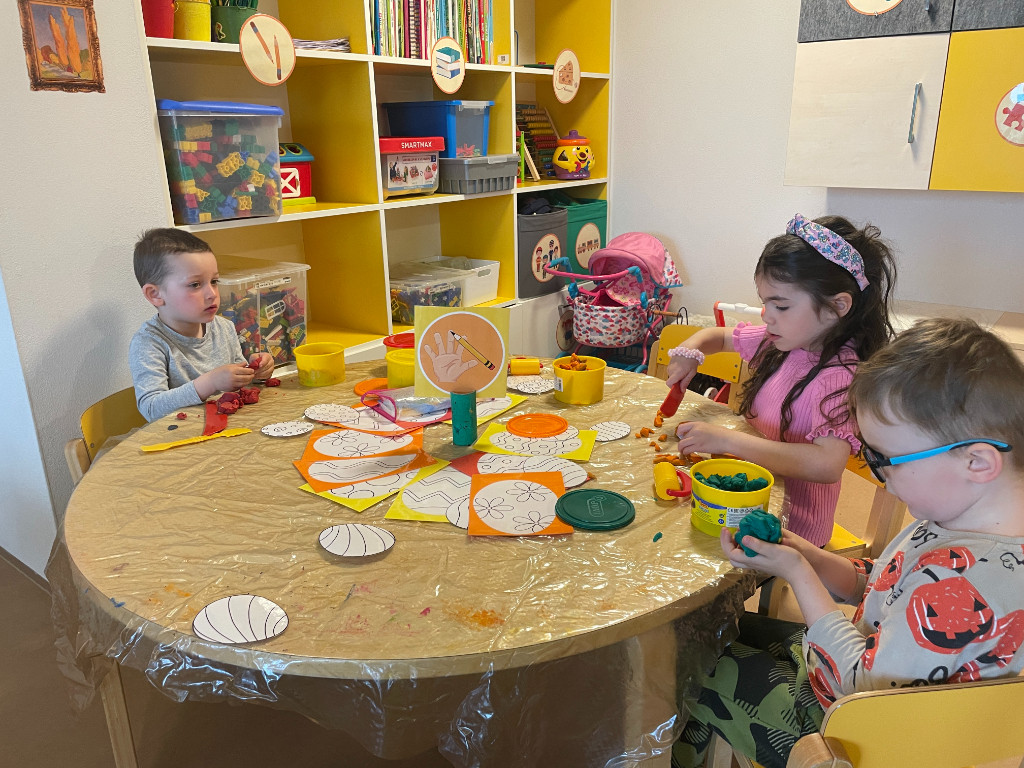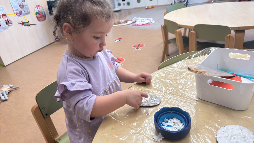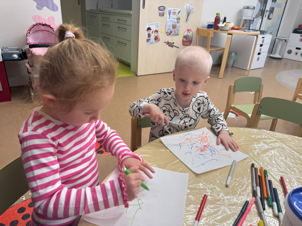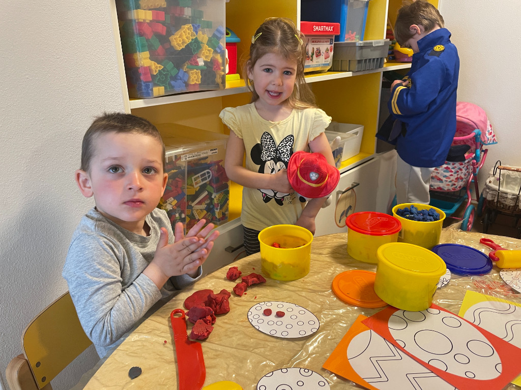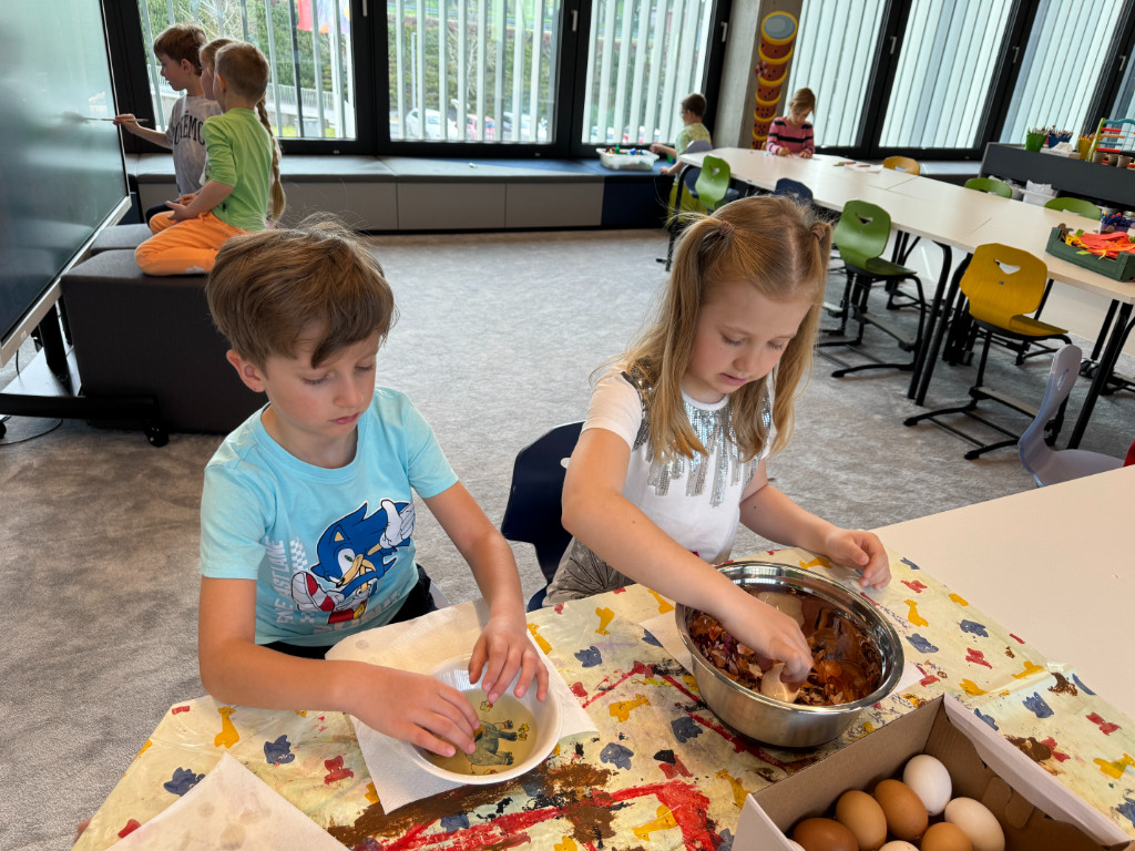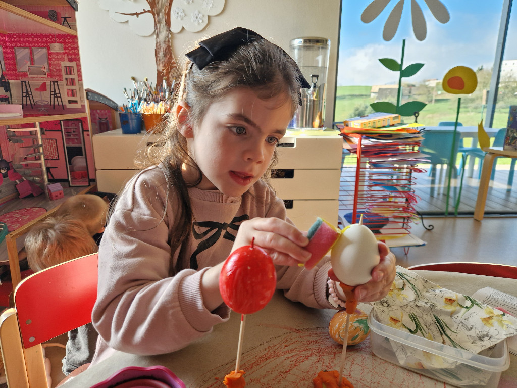 V našej triede Veľkáčov zavládla pred Veľkou nocou tvorivá atmosféra. S radosťou sme sa pustili do maľovania veľkonočných vajíčok – niektoré boli bodkované, iné pásikavé alebo plné pestrých farieb a kvetov. Okrem toho sme si vyrobili aj vlastné papierové vajíčka, ktoré sme krásne vyzdobili. Žilo to u nás farbami, smiechom a jarnou veľkonočnou náladou.